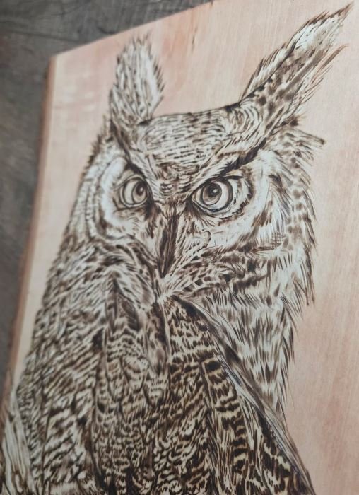 I love wood burning wildlife. So for my latest Pyrography I wanted to create the amazing Great Horned Owl.